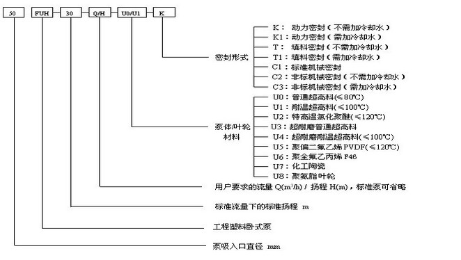 FUH系列工程塑料泵为卧式、单级、单吸、托架式离心泵。目前随着冶炼、石油、化学工业的迅速发展,对输送强腐蚀性、带有细颗粒介质的砂浆泵需要越来越迫切。本厂正是争对这种需要,采用当今世界上 新颖的工程塑料超高分子量聚乙烯(UHMWPE)作为过流部件材质,其耐腐蚀性能优良、耐磨性能优异(居各种塑料之首)、耐冲击性能强。泵的密封分别采用机械密封、动力密封和填料密